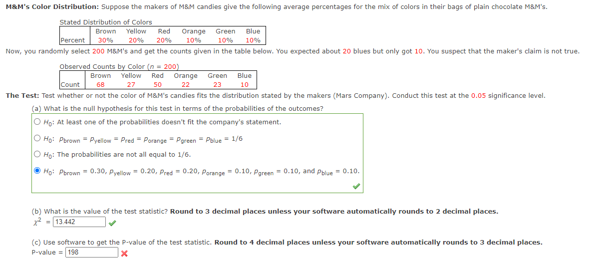 Solved The Expected Proportions Of Colors Of M Ms According Chegg Com