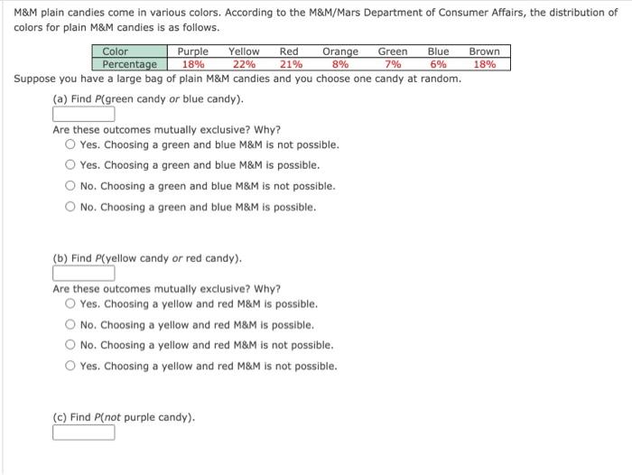 M M Plain Candies Come In Various Colors According Chegg Com